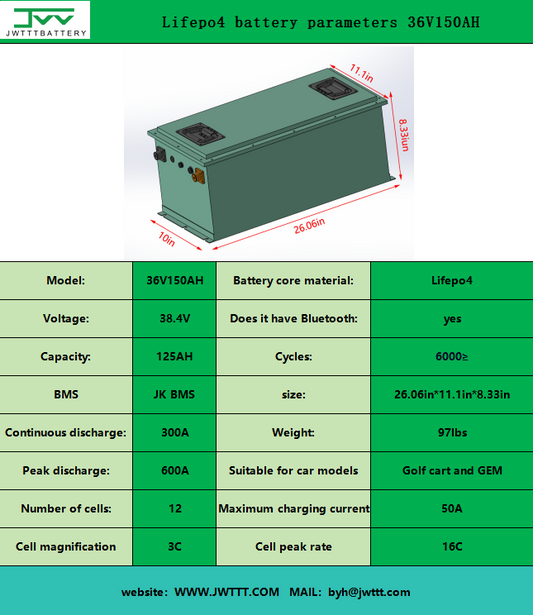 Lifepo4 battery parameters 36V150AH