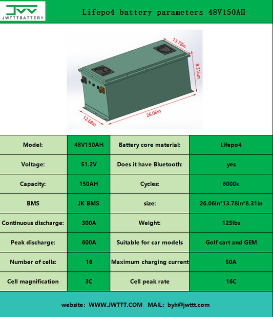 Lifepo4 battery parameters 48V150AH