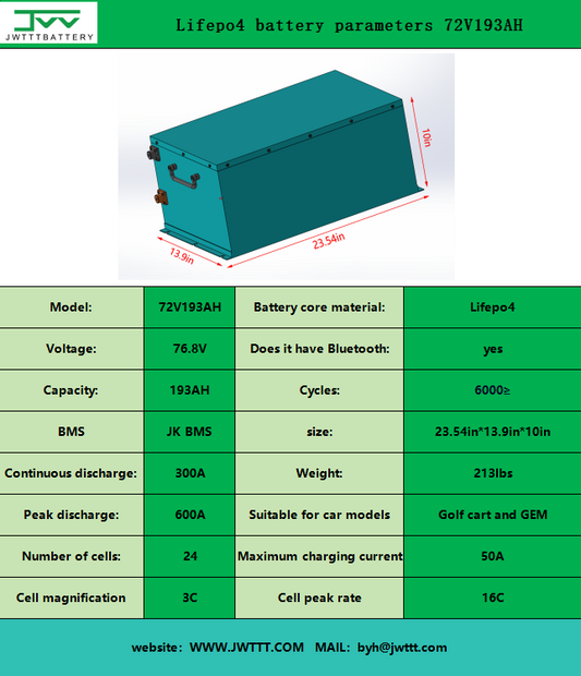 Lifepo4 battery parameters 72V193AH