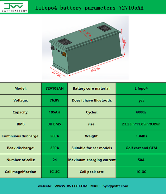Lifepo4 battery parameters 72V105AH