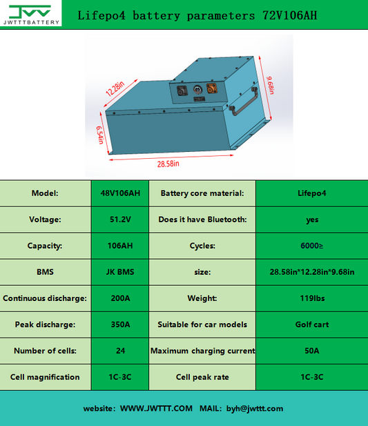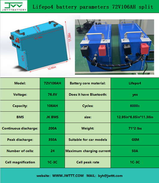 Lifepo4 battery parameters 72V106AH split