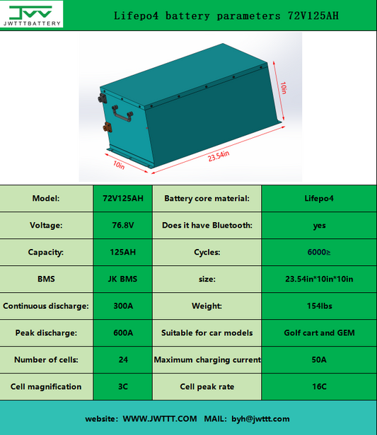 Lifepo4 battery parameters 72V125AH